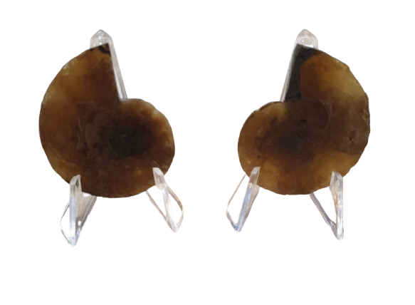 Amonite Opalizado de Madagascar, pieza a la mitad con expositores.